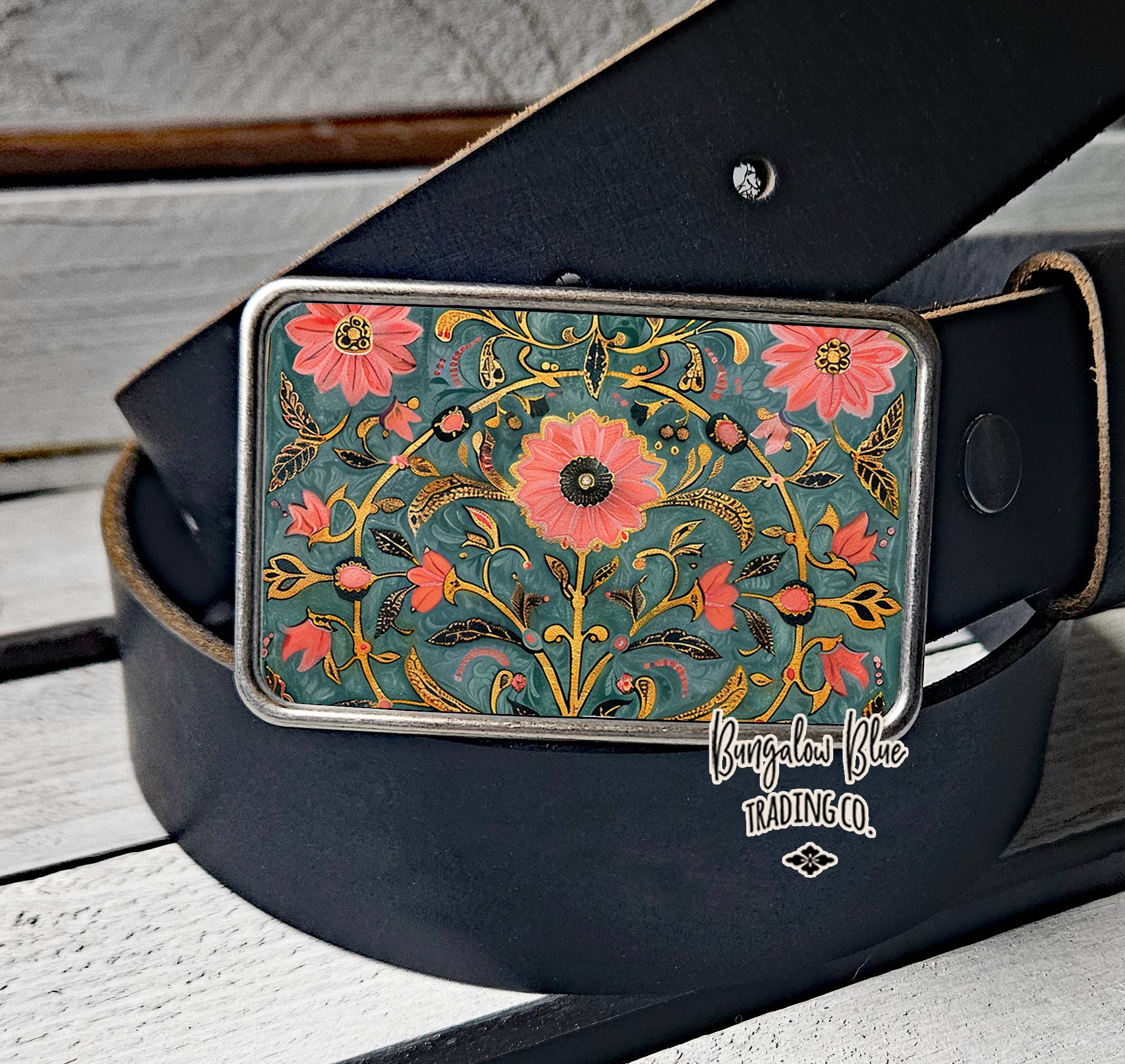Pink Teal Boho Indian Floral Pattern Belt Buckle